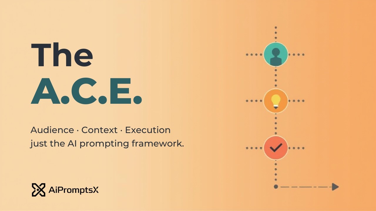 The A.C.E. Framework (Audience, Context, Execution) is a structured approach to prompt engineering designed for creating compelling, targeted content and creative outputs with AI systems. This framework is built on the principle that effective communication begins with a clear understanding of the audience and context, followed by precise instructions for execution.